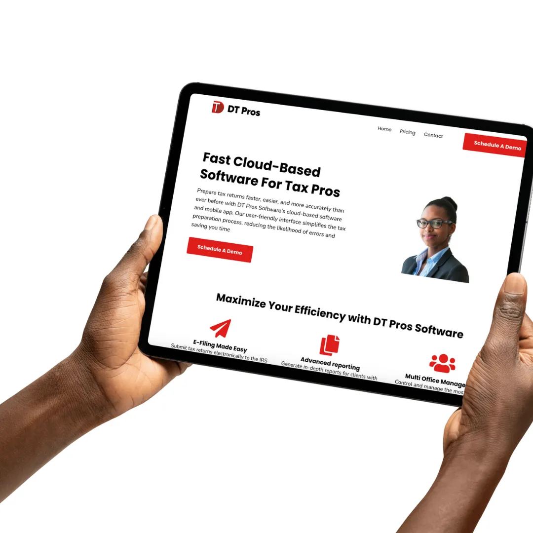 Prepare tax returns faster, easier, and more accurately than ever before with DT Pros Software's cloud-based software and mobile app. Our user-friendly interface simplifies the tax preparation process, reducing the likelihood of errors and saving you time